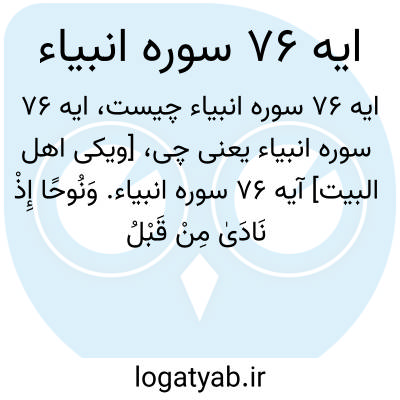 [ویکی اهل البیت] آیه 76 سوره انبیاء. وَنُوحًا إِذْ نَادَیٰ مِنْ قَبْلُ فَاسْتَجَبْنَا لَهُ فَنَجَّیْنَاهُ وَأَهْلَهُ مِنَ الْکَرْبِ الْعَظِیمِ