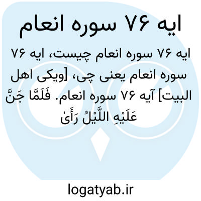 [ویکی اهل البیت] آیه 76 سوره انعام. فَلَمَّا جَنَّ عَلَیْهِ اللَّیْلُ رَأَیٰ کَوْکَبًا ۖ قَالَ هَٰذَا رَبِّی ۖ فَلَمَّا أَفَلَ قَالَ لَا أُحِبُّ الْآفِلِینَ