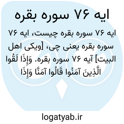 [ویکی اهل البیت] آیه 76 سوره بقره. وَإِذَا لَقُوا الَّذِینَ آمَنُوا قَالُوا آمَنَّا وَإِذَا خَلَا بَعْضُهُمْ إِلَیٰ بَعْضٍ قَالُوا أَتُحَدِّثُونَهُمْ بِمَا فَتَحَ اللَّهُ عَلَیْکُمْ لِیُحَاجُّوکُمْ بِهِ عِنْدَ رَبِّکُمْ ۚ أَفَلَا تَعْقِلُونَ