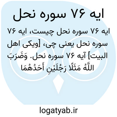 [ویکی اهل البیت] آیه 76 سوره نحل. وَضَرَبَ اللَّهُ مَثَلًا رَجُلَیْنِ أَحَدُهُمَا أَبْکَمُ لَا یَقْدِرُ عَلَیٰ شَیْءٍ وَهُوَ کَلٌّ عَلَیٰ مَوْلَاهُ أَیْنَمَا یُوَجِّهْهُ لَا یَأْتِ بِخَیْرٍ ۖ هَلْ یَسْتَوِی هُوَ وَمَنْ یَأْمُرُ بِالْعَدْلِ ۙ وَهُوَ عَلَیٰ صِرَاطٍ مُسْتَقِیمٍ