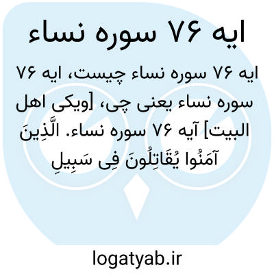 [ویکی اهل البیت] آیه 76 سوره نساء. الَّذِینَ آمَنُوا یُقَاتِلُونَ فِی سَبِیلِ اللَّهِ ۖ وَالَّذِینَ کَفَرُوا یُقَاتِلُونَ فِی سَبِیلِ الطَّاغُوتِ فَقَاتِلُوا أَوْلِیَاءَ الشَّیْطَانِ ۖ إِنَّ کَیْدَ الشَّیْطَانِ کَانَ ضَعِیفًا