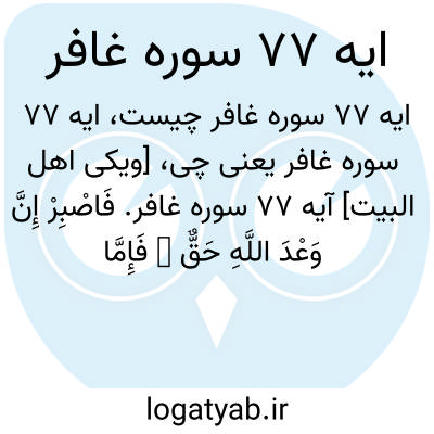 [ویکی اهل البیت] آیه 77 سوره غافر. فَاصْبِرْ إِنَّ وَعْدَ اللَّهِ حَقٌّ ۚ فَإِمَّا نُرِیَنَّکَ بَعْضَ الَّذِی نَعِدُهُمْ أَوْ نَتَوَفَّیَنَّکَ فَإِلَیْنَا یُرْجَعُونَ