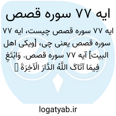 [ویکی اهل البیت] آیه 77 سوره قصص. وَابْتَغِ فِیمَا آتَاکَ اللَّهُ الدَّارَ الْآخِرَةَ ۖ وَلَا تَنْسَ نَصِیبَکَ مِنَ الدُّنْیَا ۖ وَأَحْسِنْ کَمَا أَحْسَنَ اللَّهُ إِلَیْکَ ۖ وَلَا تَبْغِ الْفَسَادَ فِی الْأَرْضِ ۖ إِنَّ اللَّهَ لَا یُحِبُّ الْمُفْسِدِینَ