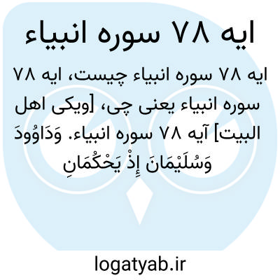 [ویکی اهل البیت] آیه 78 سوره انبیاء. وَدَاوُودَ وَسُلَیْمَانَ إِذْ یَحْکُمَانِ فِی الْحَرْثِ إِذْ نَفَشَتْ فِیهِ غَنَمُ الْقَوْمِ وَکُنَّا لِحُکْمِهِمْ شَاهِدِینَ