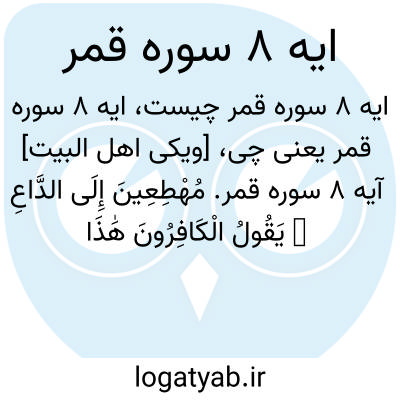 [ویکی اهل البیت] آیه 8 سوره قمر. مُهْطِعِینَ إِلَی الدَّاعِ ۖ یَقُولُ الْکَافِرُونَ هَٰذَا یَوْمٌ عَسِرٌ