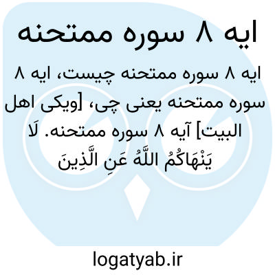 [ویکی اهل البیت] آیه 8 سوره ممتحنه. لَا یَنْهَاکُمُ اللَّهُ عَنِ الَّذِینَ لَمْ یُقَاتِلُوکُمْ فِی الدِّینِ وَلَمْ یُخْرِجُوکُمْ مِنْ دِیَارِکُمْ أَنْ تَبَرُّوهُمْ وَتُقْسِطُوا إِلَیْهِمْ ۚ إِنَّ اللَّهَ یُحِبُّ الْمُقْسِطِینَ