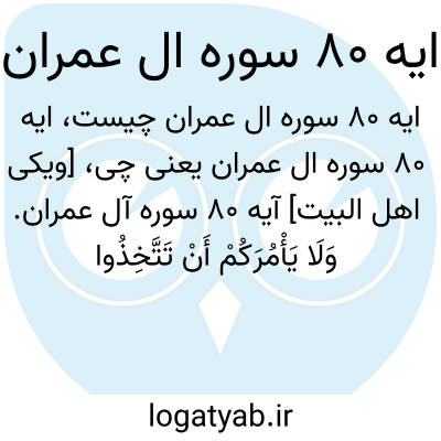 [ویکی اهل البیت] آیه 80 سوره آل عمران. وَلَا یَأْمُرَکُمْ أَنْ تَتَّخِذُوا الْمَلَائِکَةَ وَالنَّبِیِّینَ أَرْبَابًا ۗ أَیَأْمُرُکُمْ بِالْکُفْرِ بَعْدَ إِذْ أَنْتُمْ مُسْلِمُونَ