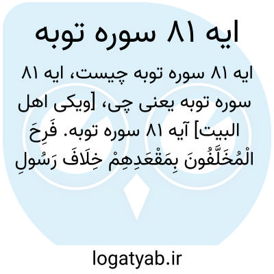 [ویکی اهل البیت] آیه 81 سوره توبه. فَرِحَ الْمُخَلَّفُونَ بِمَقْعَدِهِمْ خِلَافَ رَسُولِ اللَّهِ وَکَرِهُوا أَنْ یُجَاهِدُوا بِأَمْوَالِهِمْ وَأَنْفُسِهِمْ فِی سَبِیلِ اللَّهِ وَقَالُوا لَا تَنْفِرُوا فِی الْحَرِّ ۗ قُلْ نَارُ جَهَنَّمَ أَشَدُّ حَرًّا ۚ لَوْ کَانُوا یَفْقَهُونَ