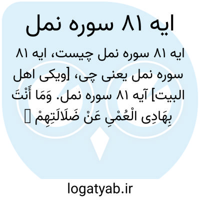 [ویکی اهل البیت] آیه 81 سوره نمل. وَمَا أَنْتَ بِهَادِی الْعُمْیِ عَنْ ضَلَالَتِهِمْ ۖ إِنْ تُسْمِعُ إِلَّا مَنْ یُؤْمِنُ بِآیَاتِنَا فَهُمْ مُسْلِمُونَ