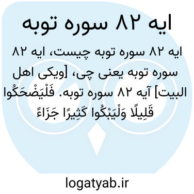 [ویکی اهل البیت] آیه 82 سوره توبه. فَلْیَضْحَکُوا قَلِیلًا وَلْیَبْکُوا کَثِیرًا جَزَاءً بِمَا کَانُوا یَکْسِبُونَ