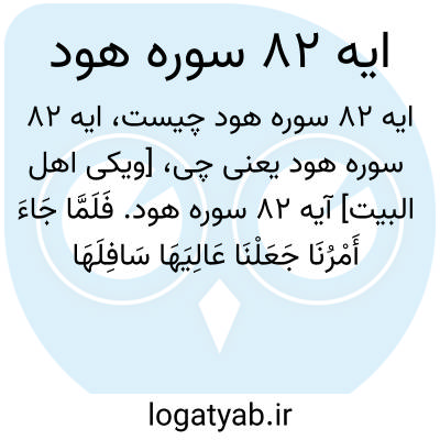 [ویکی اهل البیت] آیه 82 سوره هود. فَلَمَّا جَاءَ أَمْرُنَا جَعَلْنَا عَالِیَهَا سَافِلَهَا وَأَمْطَرْنَا عَلَیْهَا حِجَارَةً مِنْ سِجِّیلٍ مَنْضُودٍ