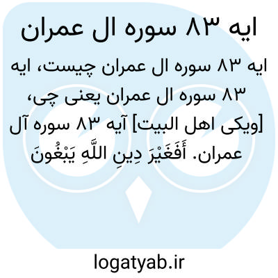 [ویکی اهل البیت] آیه 83 سوره آل عمران. أَفَغَیْرَ دِینِ اللَّهِ یَبْغُونَ وَلَهُ أَسْلَمَ مَنْ فِی السَّمَاوَاتِ وَالْأَرْضِ طَوْعًا وَکَرْهًا وَإِلَیْهِ یُرْجَعُونَ