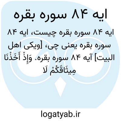 [ویکی اهل البیت] آیه 84 سوره بقره. وَإِذْ أَخَذْنَا مِیثَاقَکُمْ لَا تَسْفِکُونَ دِمَاءَکُمْ وَلَا تُخْرِجُونَ أَنْفُسَکُمْ مِنْ دِیَارِکُمْ ثُمَّ أَقْرَرْتُمْ وَأَنْتُمْ تَشْهَدُونَ