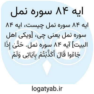 [ویکی اهل البیت] آیه 84 سوره نمل. حَتَّیٰ إِذَا جَاءُوا قَالَ أَکَذَّبْتُمْ بِآیَاتِی وَلَمْ تُحِیطُوا بِهَا عِلْمًا أَمَّاذَا کُنْتُمْ تَعْمَلُونَ