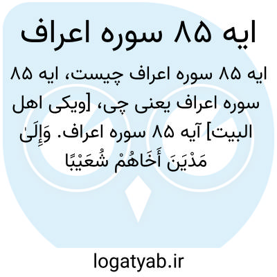 [ویکی اهل البیت] آیه 85 سوره اعراف. وَإِلَیٰ مَدْیَنَ أَخَاهُمْ شُعَیْبًا ۗ قَالَ یَا قَوْمِ اعْبُدُوا اللَّهَ مَا لَکُمْ مِنْ إِلَٰهٍ غَیْرُهُ ۖ قَدْ جَاءَتْکُمْ بَیِّنَةٌ مِنْ رَبِّکُمْ ۖ فَأَوْفُوا الْکَیْلَ وَالْمِیزَانَ وَلَا تَبْخَسُوا النَّاسَ أَشْیَاءَهُمْ وَلَا تُفْسِدُوا فِی الْأَرْضِ بَعْدَ إِصْلَاحِهَا ۚ ذَٰلِکُمْ خَیْرٌ لَکُمْ إِنْ کُنْتُمْ مُؤْمِنِینَ