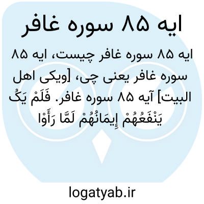 [ویکی اهل البیت] آیه 85 سوره غافر. فَلَمْ یَکُ یَنْفَعُهُمْ إِیمَانُهُمْ لَمَّا رَأَوْا بَأْسَنَا ۖ سُنَّتَ اللَّهِ الَّتِی قَدْ خَلَتْ فِی عِبَادِهِ ۖ وَخَسِرَ هُنَالِکَ الْکَافِرُونَ