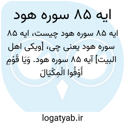 [ویکی اهل البیت] آیه 85 سوره هود. وَیَا قَوْمِ أَوْفُوا الْمِکْیَالَ وَالْمِیزَانَ بِالْقِسْطِ ۖ وَلَا تَبْخَسُوا النَّاسَ أَشْیَاءَهُمْ وَلَا تَعْثَوْا فِی الْأَرْضِ مُفْسِدِینَ