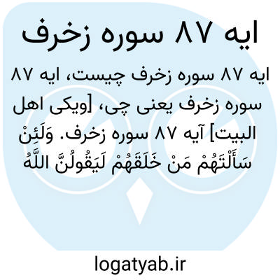 [ویکی اهل البیت] آیه 87 سوره زخرف. وَلَئِنْ سَأَلْتَهُمْ مَنْ خَلَقَهُمْ لَیَقُولُنَّ اللَّهُ ۖ فَأَنَّیٰ یُؤْفَکُونَ