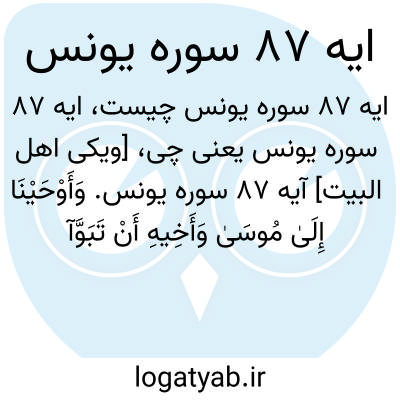 [ویکی اهل البیت] آیه 87 سوره یونس. وَأَوْحَیْنَا إِلَیٰ مُوسَیٰ وَأَخِیهِ أَنْ تَبَوَّآ لِقَوْمِکُمَا بِمِصْرَ بُیُوتًا وَاجْعَلُوا بُیُوتَکُمْ قِبْلَةً وَأَقِیمُوا الصَّلَاةَ ۗ وَبَشِّرِ الْمُؤْمِنِینَ