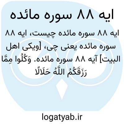 [ویکی اهل البیت] آیه 88 سوره مائده. وَکُلُوا مِمَّا رَزَقَکُمُ اللَّهُ حَلَالًا طَیِّبًا ۚ وَاتَّقُوا اللَّهَ الَّذِی أَنْتُمْ بِهِ مُؤْمِنُونَ
