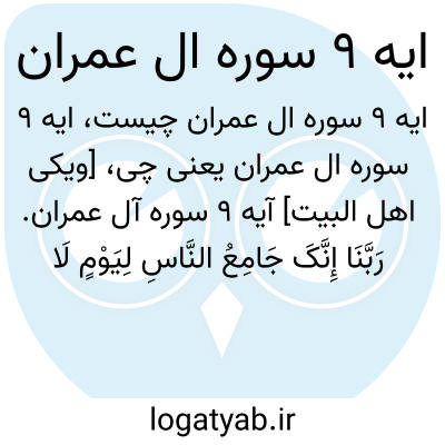 [ویکی اهل البیت] آیه 9 سوره آل عمران. رَبَّنَا إِنَّکَ جَامِعُ النَّاسِ لِیَوْمٍ لَا رَیْبَ فِیهِ ۚ إِنَّ اللَّهَ لَا یُخْلِفُ الْمِیعَادَ