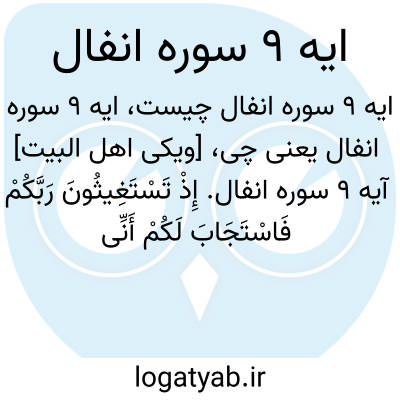 [ویکی اهل البیت] آیه 9 سوره انفال. إِذْ تَسْتَغِیثُونَ رَبَّکُمْ فَاسْتَجَابَ لَکُمْ أَنِّی مُمِدُّکُمْ بِأَلْفٍ مِنَ الْمَلَائِکَةِ مُرْدِفِینَ