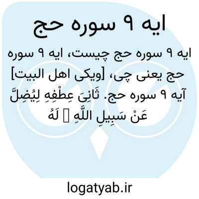 [ویکی اهل البیت] آیه 9 سوره حج. ثَانِیَ عِطْفِهِ لِیُضِلَّ عَنْ سَبِیلِ اللَّهِ ۖ لَهُ فِی الدُّنْیَا خِزْیٌ ۖ وَنُذِیقُهُ یَوْمَ الْقِیَامَةِ عَذَابَ الْحَرِیقِ