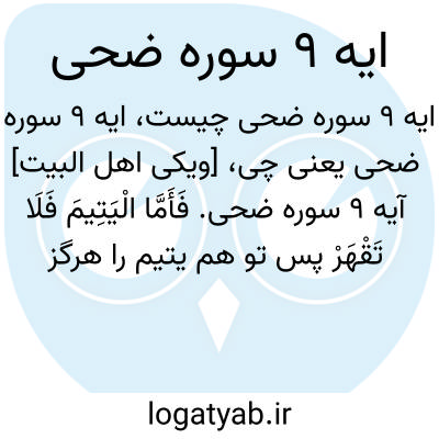 دانشنامه اسلامی [ویکی اهل البیت] آیه 9 سوره ضحی. فَأَمَّا الْیَتِیمَ فَلَا تَقْهَرْپس تو هم یتیم را هرگز میازار.و اما یتیم را خوار و رانده مکنحال که چنین است یتیم را تحقیر مکن،So as for the orphan, do not oppress.Therefore, treat not the orphan with harshness,