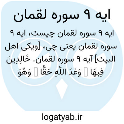[ویکی اهل البیت] آیه 9 سوره لقمان. خَالِدِینَ فِیهَا ۖ وَعْدَ اللَّهِ حَقًّا ۚ وَهُوَ الْعَزِیزُ الْحَکِیمُ