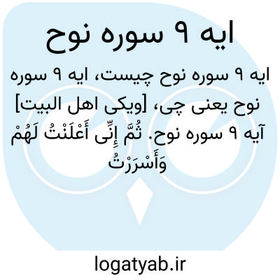 [ویکی اهل البیت] آیه 9 سوره نوح. ثُمَّ إِنِّی أَعْلَنْتُ لَهُمْ وَأَسْرَرْتُ لَهُمْ إِسْرَارًا