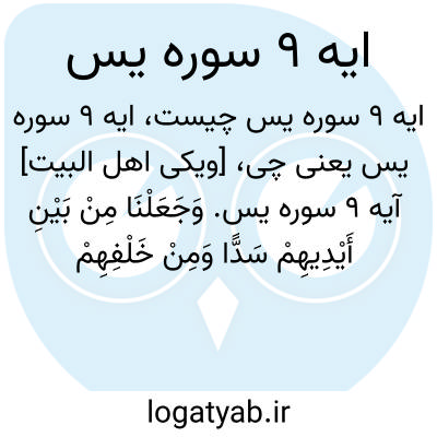 [ویکی اهل البیت] آیه 9 سوره یس. وَجَعَلْنَا مِنْ بَیْنِ أَیْدِیهِمْ سَدًّا وَمِنْ خَلْفِهِمْ سَدًّا فَأَغْشَیْنَاهُمْ فَهُمْ لَا یُبْصِرُونَ