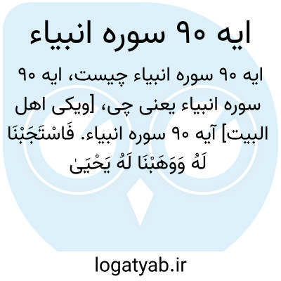 [ویکی اهل البیت] آیه 90 سوره انبیاء. فَاسْتَجَبْنَا لَهُ وَوَهَبْنَا لَهُ یَحْیَیٰ وَأَصْلَحْنَا لَهُ زَوْجَهُ ۚ إِنَّهُمْ کَانُوا یُسَارِعُونَ فِی الْخَیْرَاتِ وَیَدْعُونَنَا رَغَبًا وَرَهَبًا ۖ وَکَانُوا لَنَا خَاشِعِینَ
