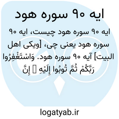 [ویکی اهل البیت] آیه 90 سوره هود. وَاسْتَغْفِرُوا رَبَّکُمْ ثُمَّ تُوبُوا إِلَیْهِ ۚ إِنَّ رَبِّی رَحِیمٌ وَدُودٌ