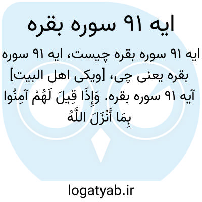 [ویکی اهل البیت] آیه 91 سوره بقره. وَإِذَا قِیلَ لَهُمْ آمِنُوا بِمَا أَنْزَلَ اللَّهُ قَالُوا نُؤْمِنُ بِمَا أُنْزِلَ عَلَیْنَا وَیَکْفُرُونَ بِمَا وَرَاءَهُ وَهُوَ الْحَقُّ مُصَدِّقًا لِمَا مَعَهُمْ ۗ قُلْ فَلِمَ تَقْتُلُونَ أَنْبِیَاءَ اللَّهِ مِنْ قَبْلُ إِنْ کُنْتُمْ مُؤْمِنِینَ
