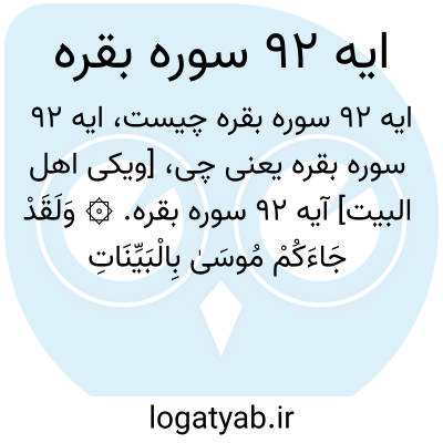 [ویکی اهل البیت] آیه 92 سوره بقره. ۞ وَلَقَدْ جَاءَکُمْ مُوسَیٰ بِالْبَیِّنَاتِ ثُمَّ اتَّخَذْتُمُ الْعِجْلَ مِنْ بَعْدِهِ وَأَنْتُمْ ظَالِمُونَ