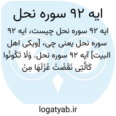 و مانند آن که پشم های تابیده خود را پس از استحکام و استواری وا می تابانید، نباشید که سوگندهایتان را میان خود به بهانه اینکه گروهی از گروهی از نظر نفرات و امکانات افزون ترند، مایه خیانت و فساد قرار دهید جز این نیست که خدا شما را به وسیله آن آزمایش می کند، و روز قیامت آنچه را همواره در آن اختلاف می کردید، برای شما روشن می سازد.