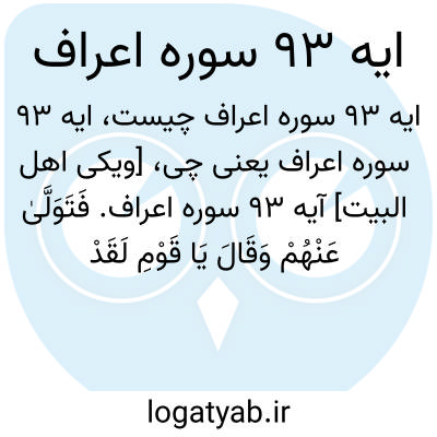 [ویکی اهل البیت] آیه 93 سوره اعراف. فَتَوَلَّیٰ عَنْهُمْ وَقَالَ یَا قَوْمِ لَقَدْ أَبْلَغْتُکُمْ رِسَالَاتِ رَبِّی وَنَصَحْتُ لَکُمْ ۖ فَکَیْفَ آسَیٰ عَلَیٰ قَوْمٍ کَافِرِینَ