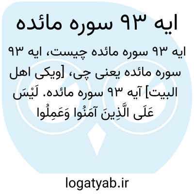 [ویکی اهل البیت] آیه 93 سوره مائده. لَیْسَ عَلَی الَّذِینَ آمَنُوا وَعَمِلُوا الصَّالِحَاتِ جُنَاحٌ فِیمَا طَعِمُوا إِذَا مَا اتَّقَوْا وَآمَنُوا وَعَمِلُوا الصَّالِحَاتِ ثُمَّ اتَّقَوْا وَآمَنُوا ثُمَّ اتَّقَوْا وَأَحْسَنُوا ۗ وَاللَّهُ یُحِبُّ الْمُحْسِنِینَ