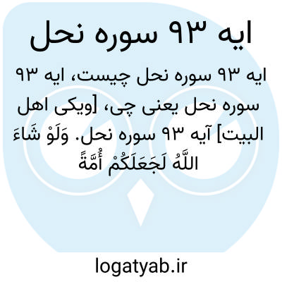 [ویکی اهل البیت] آیه 93 سوره نحل. وَلَوْ شَاءَ اللَّهُ لَجَعَلَکُمْ أُمَّةً وَاحِدَةً وَلَٰکِنْ یُضِلُّ مَنْ یَشَاءُ وَیَهْدِی مَنْ یَشَاءُ ۚ وَلَتُسْأَلُنَّ عَمَّا کُنْتُمْ تَعْمَلُونَ