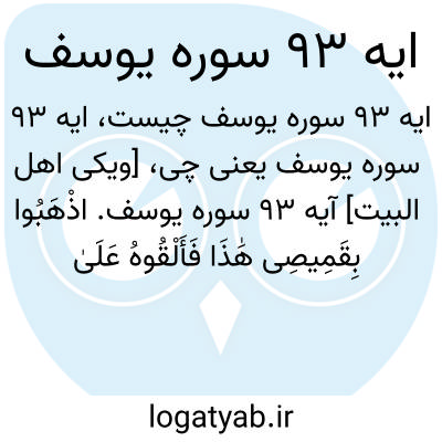 [ویکی اهل البیت] آیه 93 سوره یوسف. اذْهَبُوا بِقَمِیصِی هَٰذَا فَأَلْقُوهُ عَلَیٰ وَجْهِ أَبِی یَأْتِ بَصِیرًا وَأْتُونِی بِأَهْلِکُمْ أَجْمَعِینَ