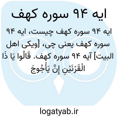 [ویکی اهل البیت] آیه 94 سوره کهف. قَالُوا یَا ذَا الْقَرْنَیْنِ إِنَّ یَأْجُوجَ وَمَأْجُوجَ مُفْسِدُونَ فِی الْأَرْضِ فَهَلْ نَجْعَلُ لَکَ خَرْجًا عَلَیٰ أَنْ تَجْعَلَ بَیْنَنَا وَبَیْنَهُمْ سَدًّا