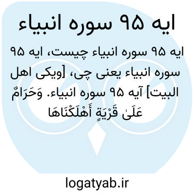 [ویکی اهل البیت] آیه 95 سوره انبیاء. وَحَرَامٌ عَلَیٰ قَرْیَةٍ أَهْلَکْنَاهَا أَنَّهُمْ لَا یَرْجِعُونَ