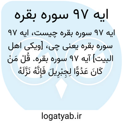 [ویکی اهل البیت] آیه 97 سوره بقره. قُلْ مَنْ کَانَ عَدُوًّا لِجِبْرِیلَ فَإِنَّهُ نَزَّلَهُ عَلَیٰ قَلْبِکَ بِإِذْنِ اللَّهِ مُصَدِّقًا لِمَا بَیْنَ یَدَیْهِ وَهُدًی وَبُشْرَیٰ لِلْمُؤْمِنِینَ