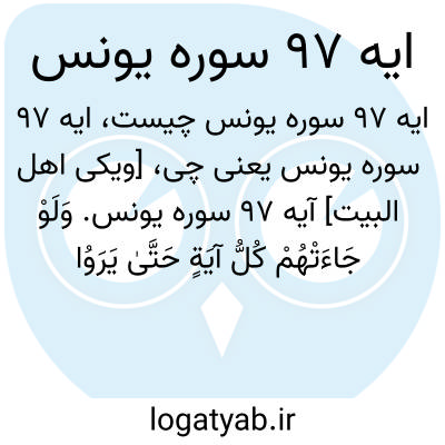 [ویکی اهل البیت] آیه 97 سوره یونس. وَلَوْ جَاءَتْهُمْ کُلُّ آیَةٍ حَتَّیٰ یَرَوُا الْعَذَابَ الْأَلِیمَ