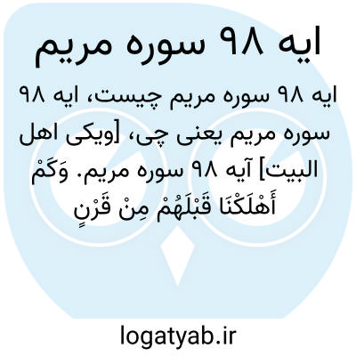 [ویکی اهل البیت] آیه 98 سوره مریم. وَکَمْ أَهْلَکْنَا قَبْلَهُمْ مِنْ قَرْنٍ هَلْ تُحِسُّ مِنْهُمْ مِنْ أَحَدٍ أَوْ تَسْمَعُ لَهُمْ رِکْزًا