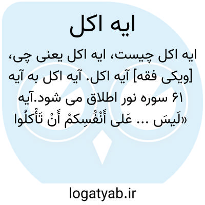 [ویکی فقه] آیه اکل. آیه اکل به آیه ۶۱ سوره نور اطلاق می شود.آیه «لَیسَ... عَلى أَنْفُسِکمْ أَنْ تَأْکلُوا مِنْ بُیوتِکمْ أَوْ بُیوتِ آبائِکمْ...»