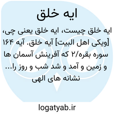[ویکی اهل البیت] آیه خلق. آیه 164 سوره بقره/2 که آفرینش آسمان ها و زمین و آمد و شد شب و روز را... نشانه های الهی دانسته، «آیه خلق» نام گرفته است: