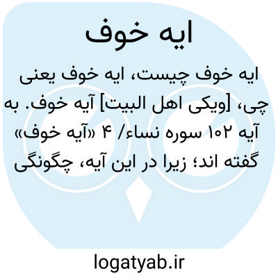 [ویکی اهل البیت] آیه خوف. به آیه 102 سوره نساء/ 4 «آیه خوف» گفته اند؛ زیرا در این آیه، چگونگی نماز خوف که هنگام جنگ باید اقامه شود، بیان شده است: