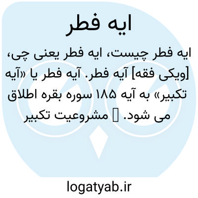 دانشنامه اسلامی [ویکی فقه] آیه فطر. آیه فطر یا «آیه تکبیر» به آیه ۱۸۵ سوره بقره اطلاق می شود.← مشروعیت تکبیر در عید فطر ۱. ↑ بقره/سوره۲، آیه۱۸۵. فرهنگ فقه مطابق مذهب اهل بیت، ج۱، ص۲۰۰. ...