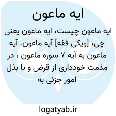 [ویکی فقه] آیه ماعون. آیه ماعون به آیه ۷ سوره ماعون، در مذمت خودداری از قرض و یا بذل امور جزئی به دیگران اطلاق می شود.